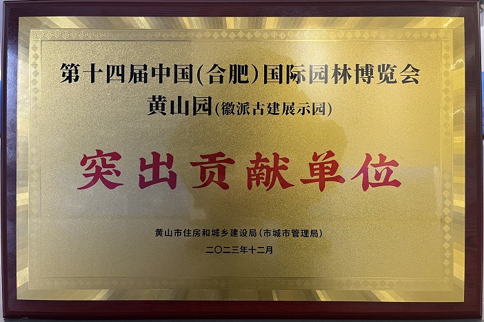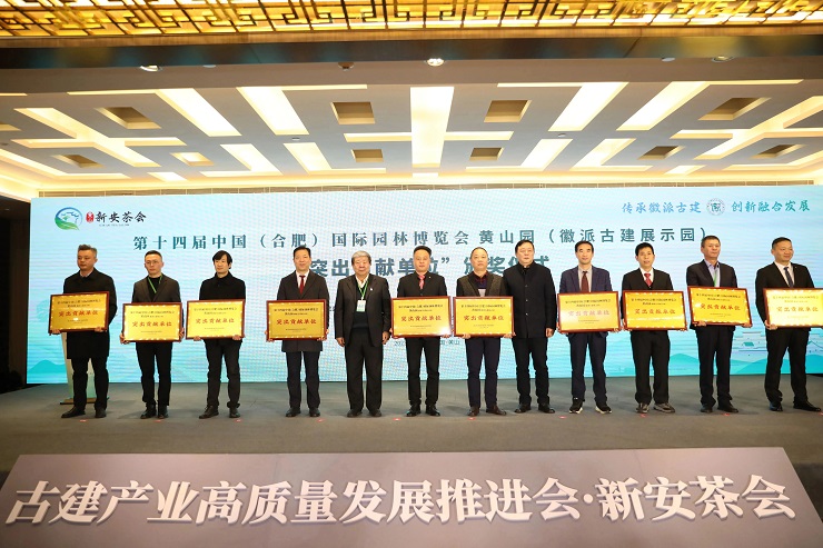 12月18日下午,中國(黃山)第三屆徽派古建產業(yè)發(fā)展大會古建產業(yè)高質量發(fā)展推進會·新安茶會舉行。推進會上頒發(fā)了第十四屆中國(合肥)國際園林博覽會黃山園(徽派古建展示園)“突出貢獻單位”獎項,作為黃山園項目參建單位之一的黃山建工集團再獲殊榮。